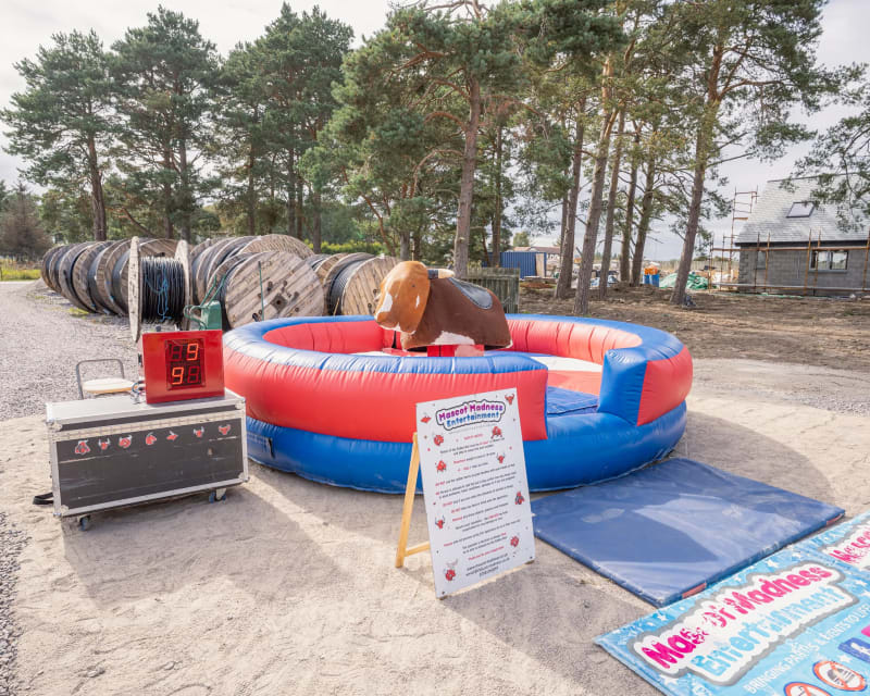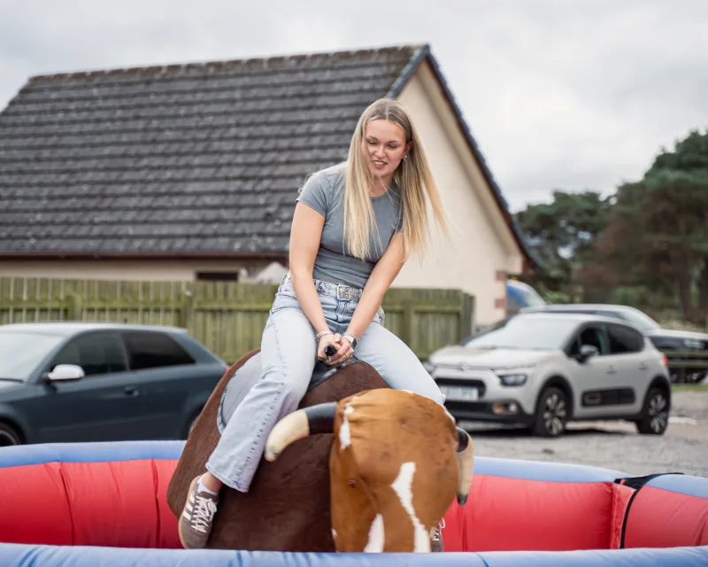 Our Rodeo Bull can also be hired with a rain shelter which means you don't have to rely on the good old Scottish weather. Just request the shelter at the time of booking (at no extra cost) and we will make sure our trained staff members bring it along with them.