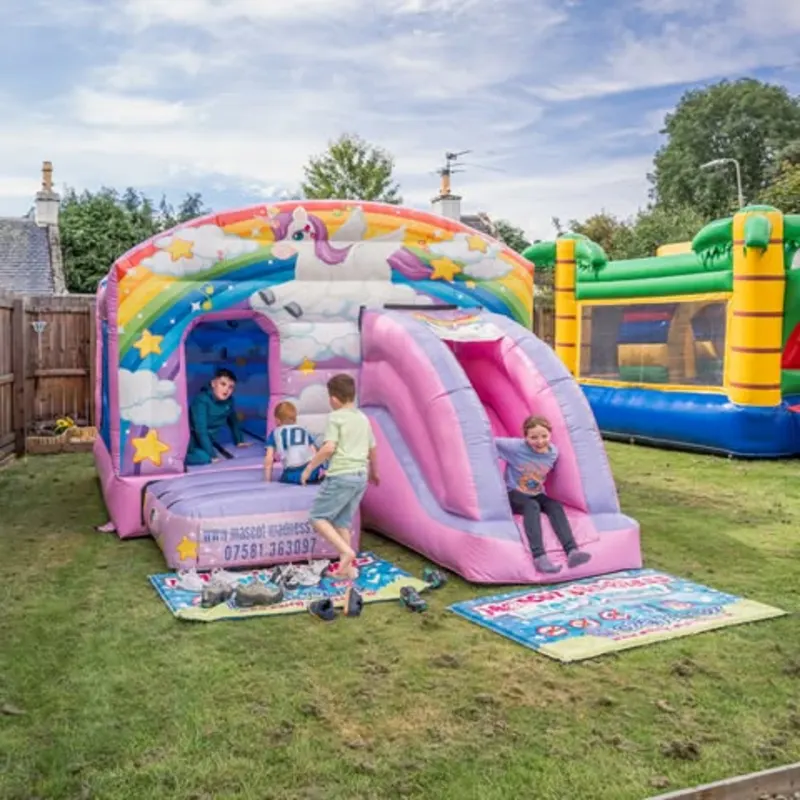The unicorn combi castles superb colours make it stand out at any event combined with a front facing slide for some added fun it's guaranteed to be a hit for your little one's party or event.